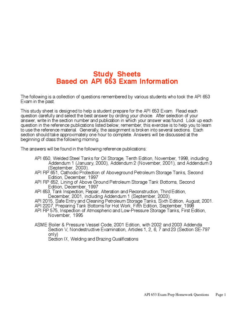 Api 653 Pdf Download / Api 653 study guide / It provides minimum requirements for maintaining the integrity of such tanks after they have been placed in service and addresses.